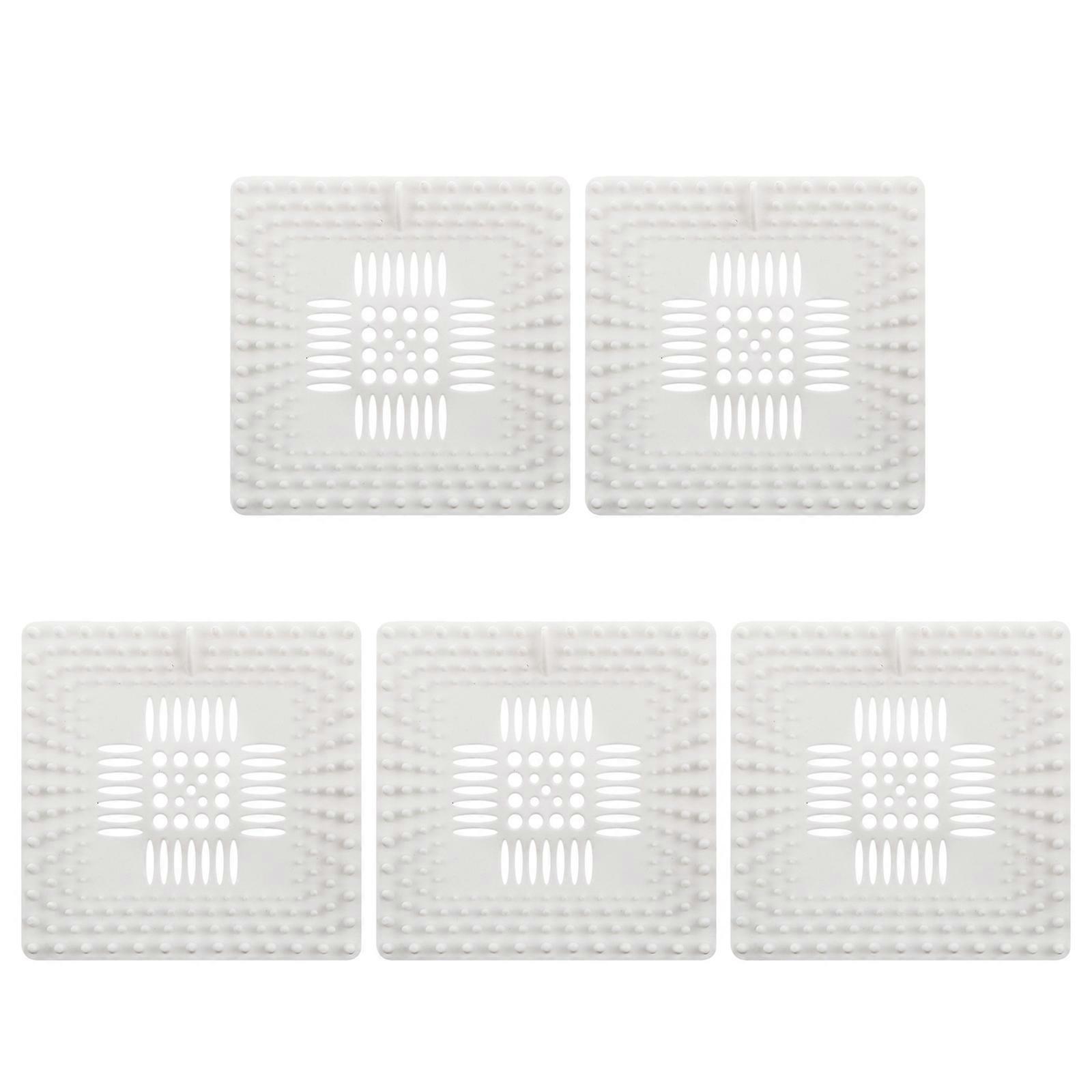 Practic Sturdy Plastic Hair Strainer Accessory for Shower and Bathtub Drain 5 Pack Easy Installation Prevents Clogs White