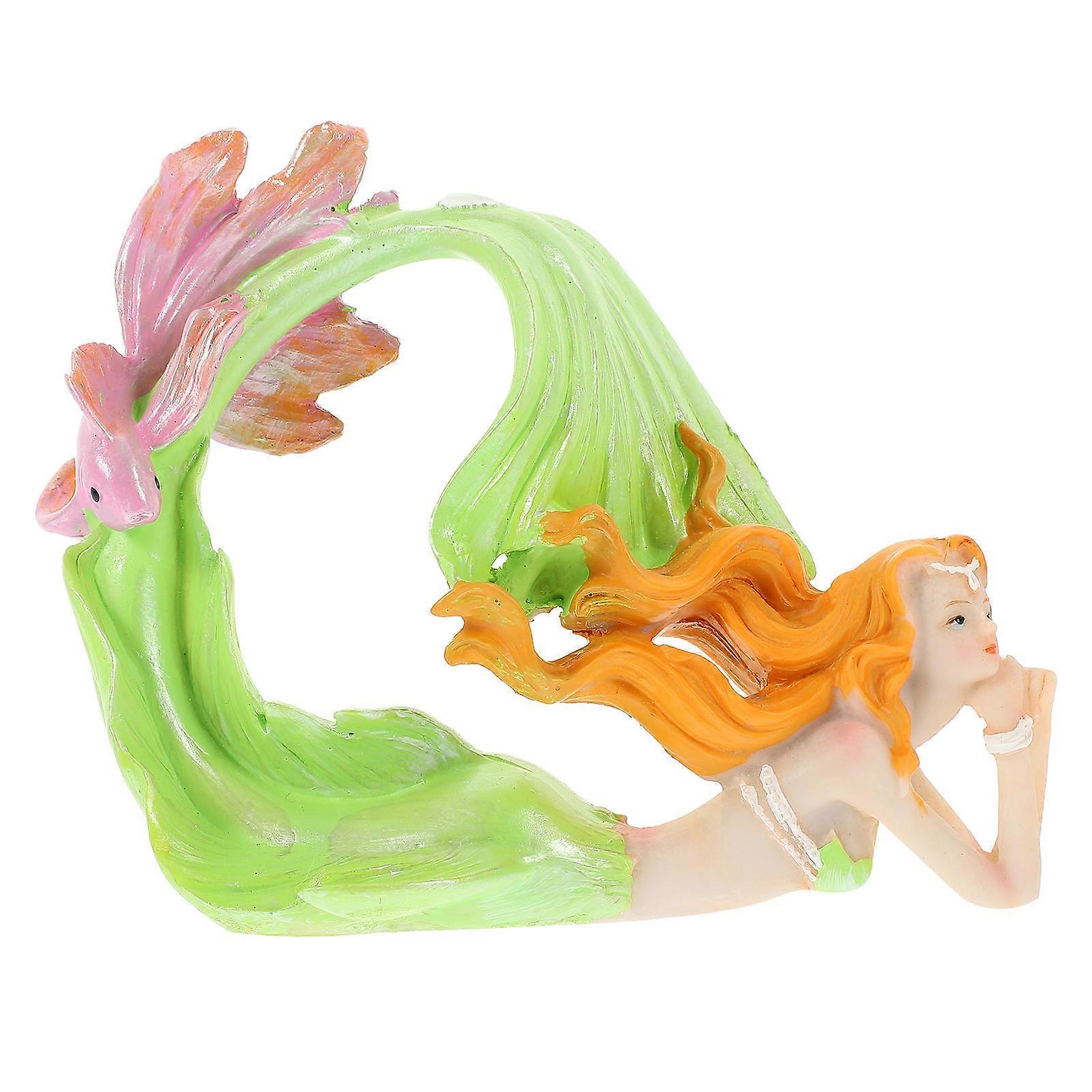 Green Mermaid Figurines Decor Resin Mermaid Statue for Fish Tank 3Pcs