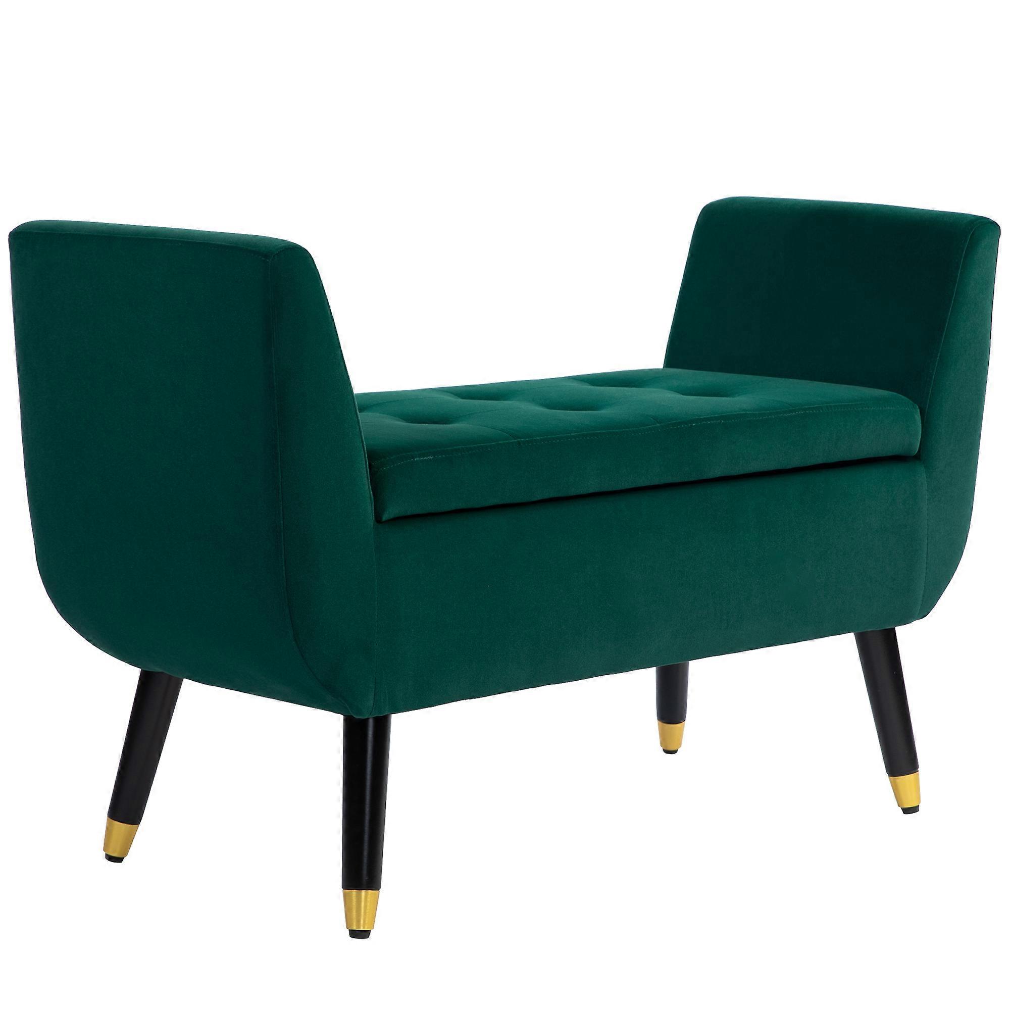 Green Luxury Storage Bench Armrests Velvet Look 107x42x65cm