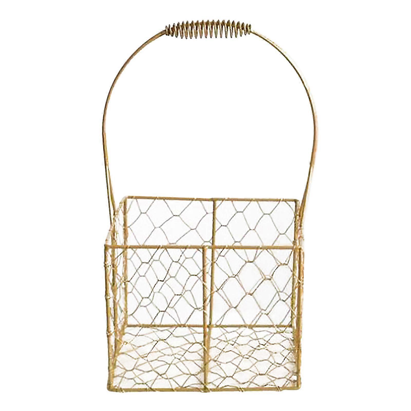 Green countryside Wire Storage Basket with Handle,Portable Flower Basket,Ivory Flower Girl Basket,Metal Iron Geometric Flower Girl Basket Organizer Bi