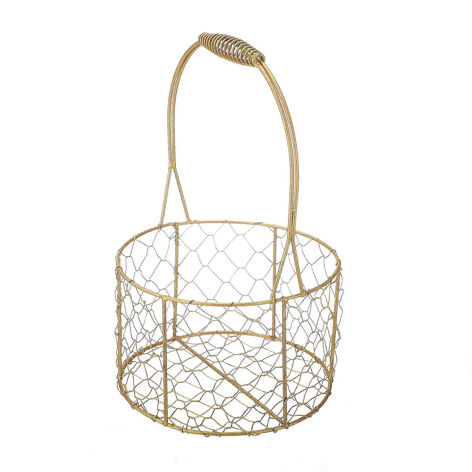Green countryside Wire Storage Basket with Handle,Portable Flower Basket,Ivory Flower Girl Basket,Metal Iron Geometric Flower Girl Basket Organizer Bi