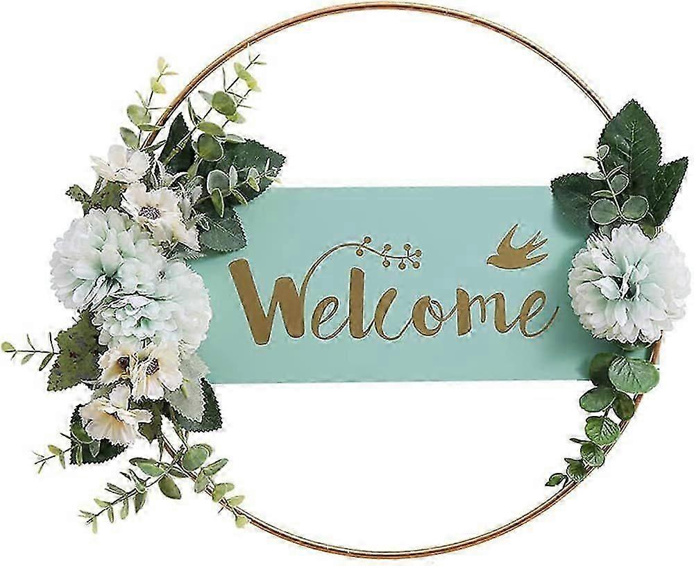 Green Metal Welcome Sign Door Wreath - Flower Welcome Sign Decoration for Front Door