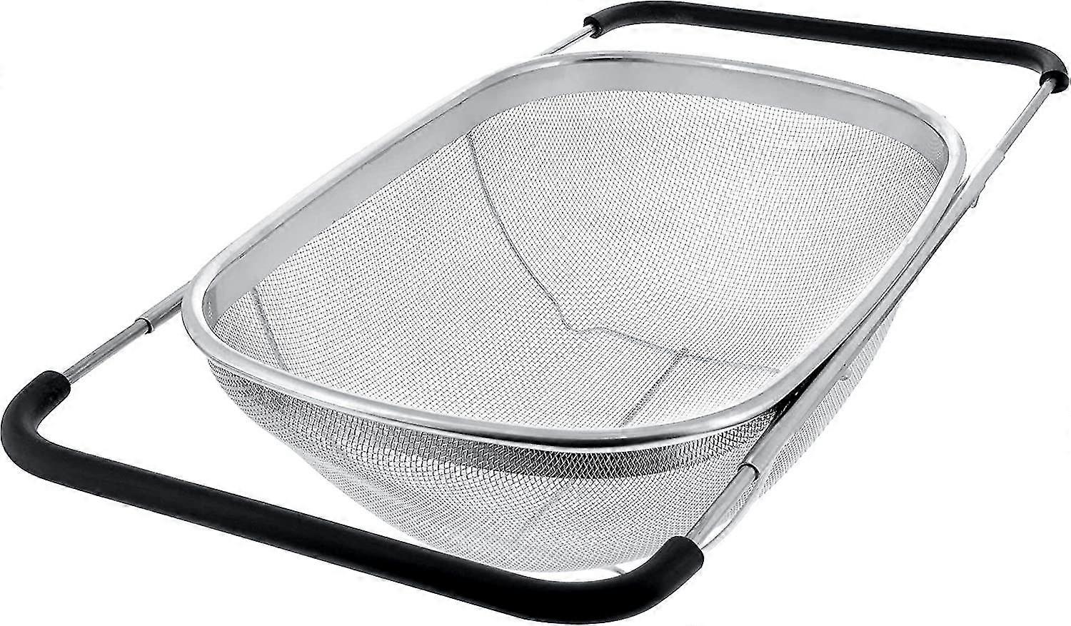 Kitchen Supply - Premium Quality Over The Sink Stainless Steel Oval Colander With Fine Mesh 6 Quart Strainer Basket Expandable Handles -