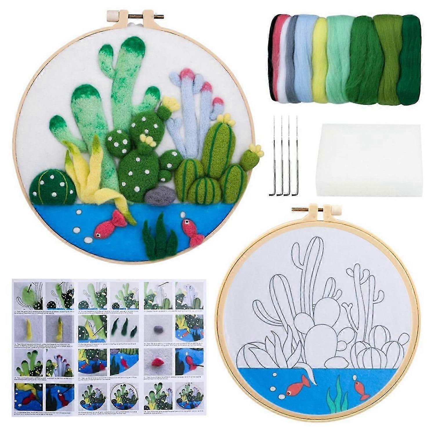 Needle Felt Supplies for Beginners,Needle Felt Set,Felt Needle,Picture Frame,Foam Pad,Felt Cloth and Instructions