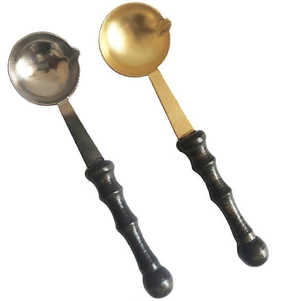 Wax Seal Supplies Copper Wax Spoon For Sealing Diy Supplies Natural Wood Handle 2Pcs