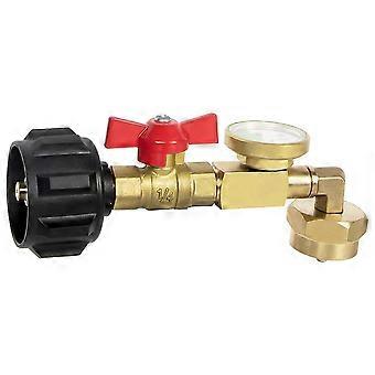 Propane adapter for refilling 1 lb bottles from 20 lb tank with gauge