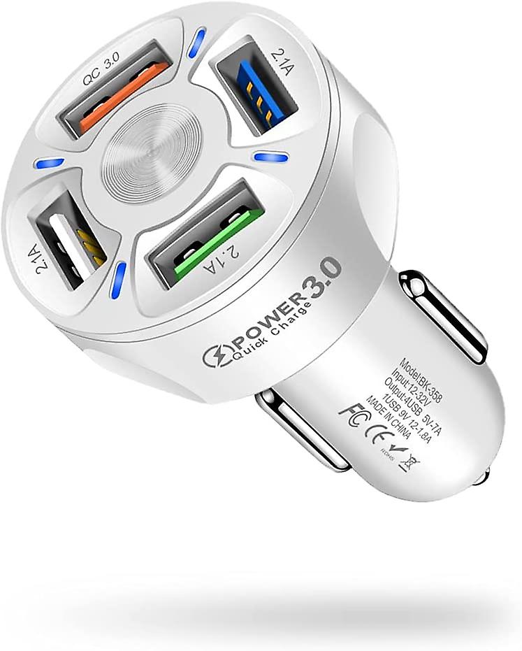Car Charger Adapter, 4 Ports USB Fast Car Charger QC3.0, Quick Car Phone Charger with LED Light Display, Compatible with iPhone 12 Pro Max/11 Pro/XS/X