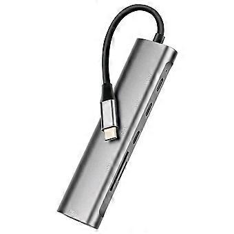 Aluminum Alloy Type C Hub 6 in 1 Adapter with USB 3.0, Type C Data Transfer, and PD 60W Charging Perfect for Office