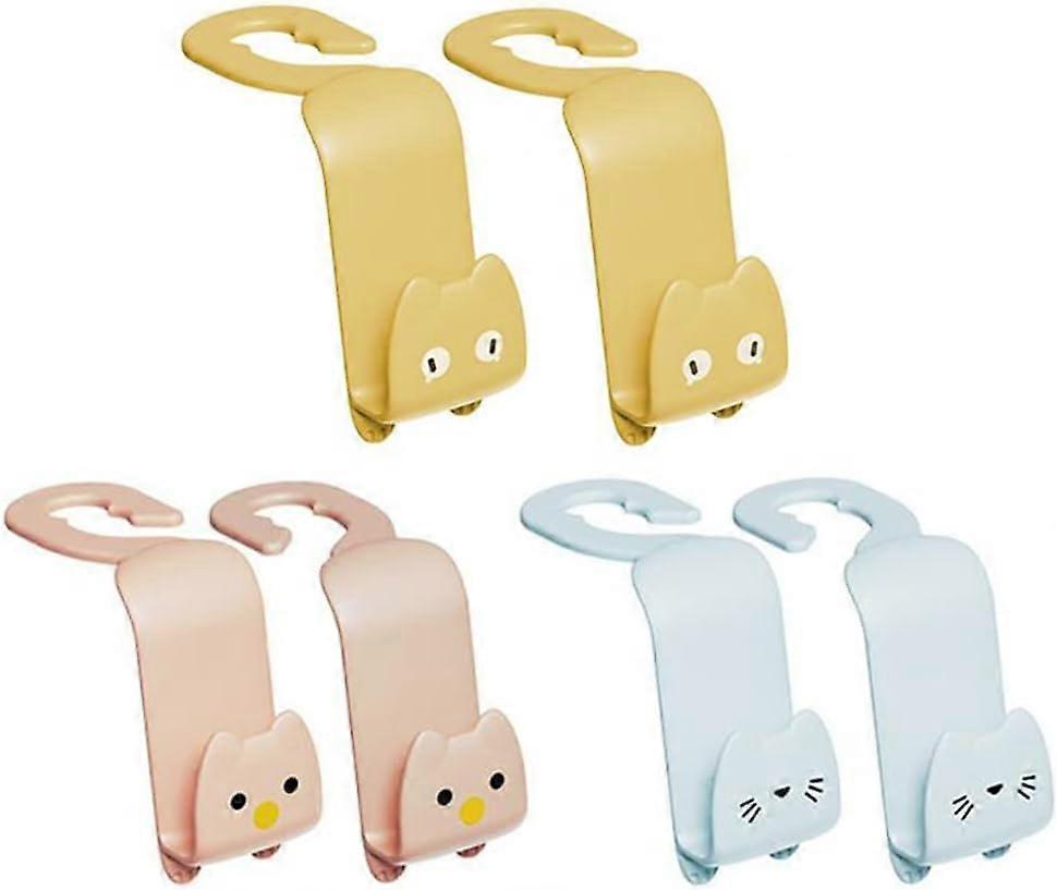 Car Headrest Hooks Car Storage Hooks Back Seat Headrest Hanger Auto Backseat Multifunctional Heavy Duty Storage Hooks (yellow+blue+pink 6pcs