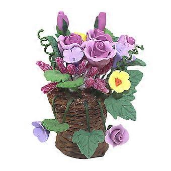 Simulated Flowers Adornments Mini House Flower Basket Decorative Miniature Home Decorations 5X4.2cm Resin 1Pack