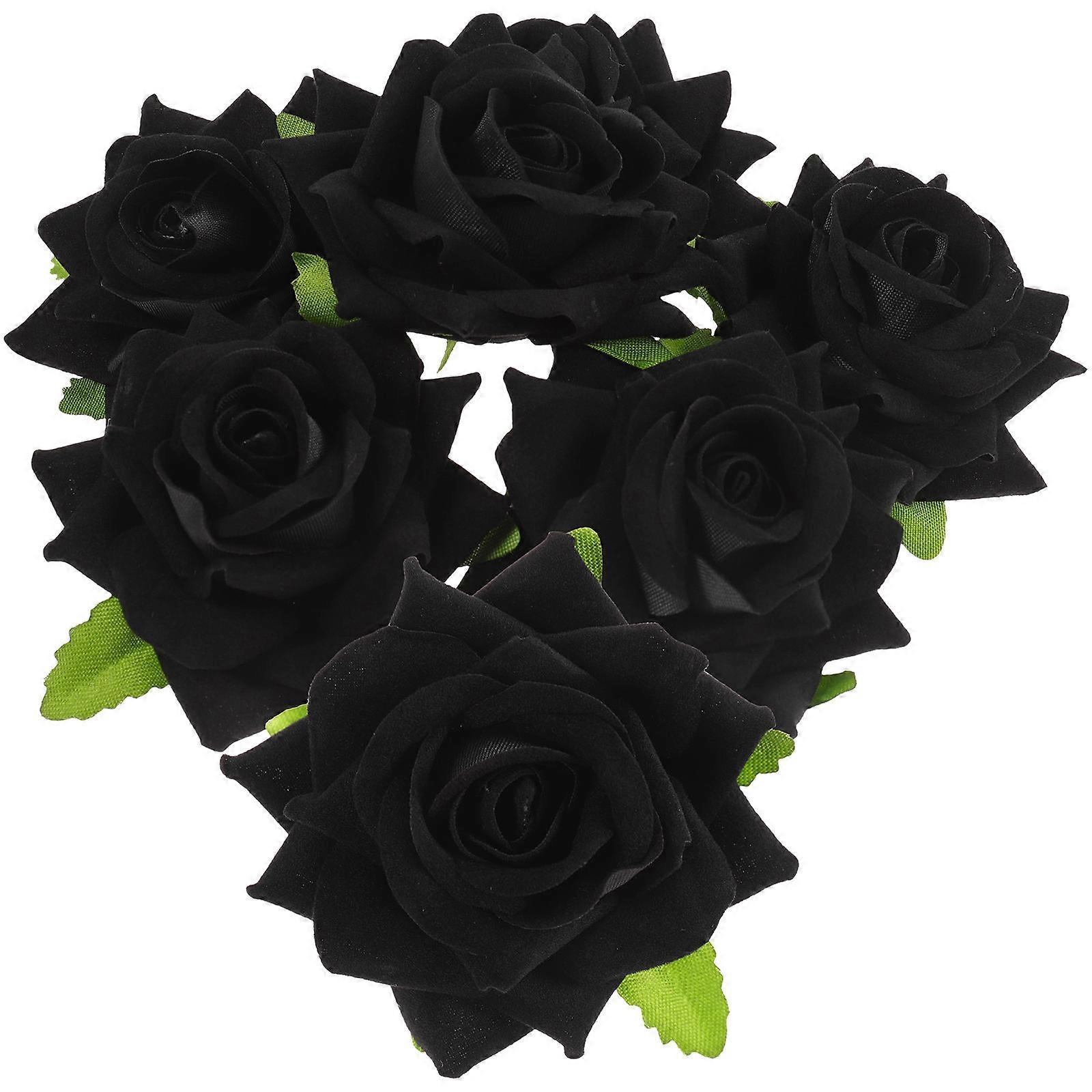 Simulation Rose Heads Artificial Fake Flower Black Realistic Design For Wedding Decor 6Pack