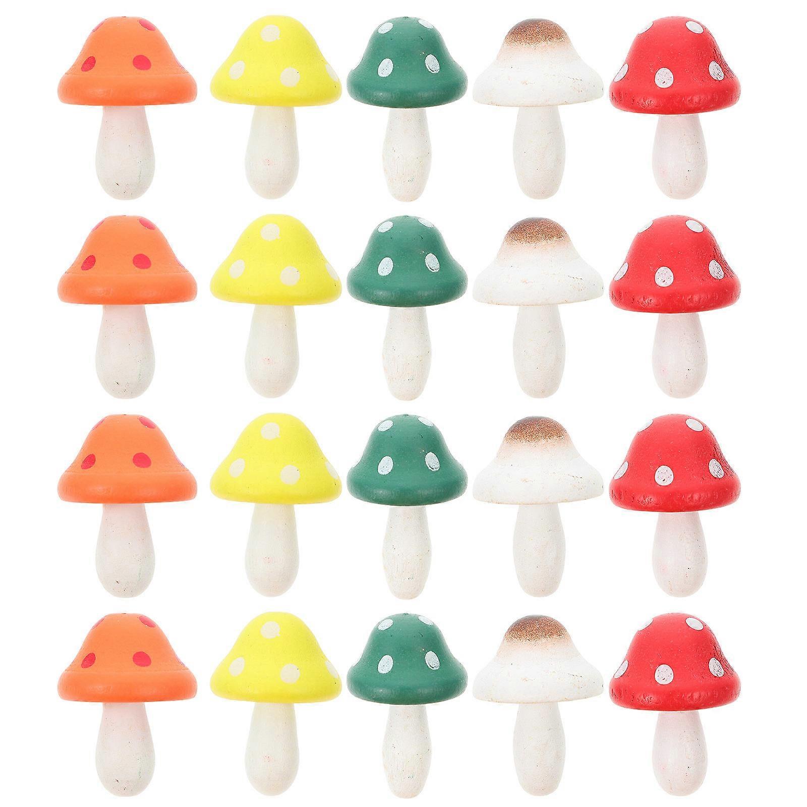 Simulation Mushroom Ornaments Wooden Mushroom Decor Yard Decor Assorted Color 2.5X3.5CM 20Pcs
