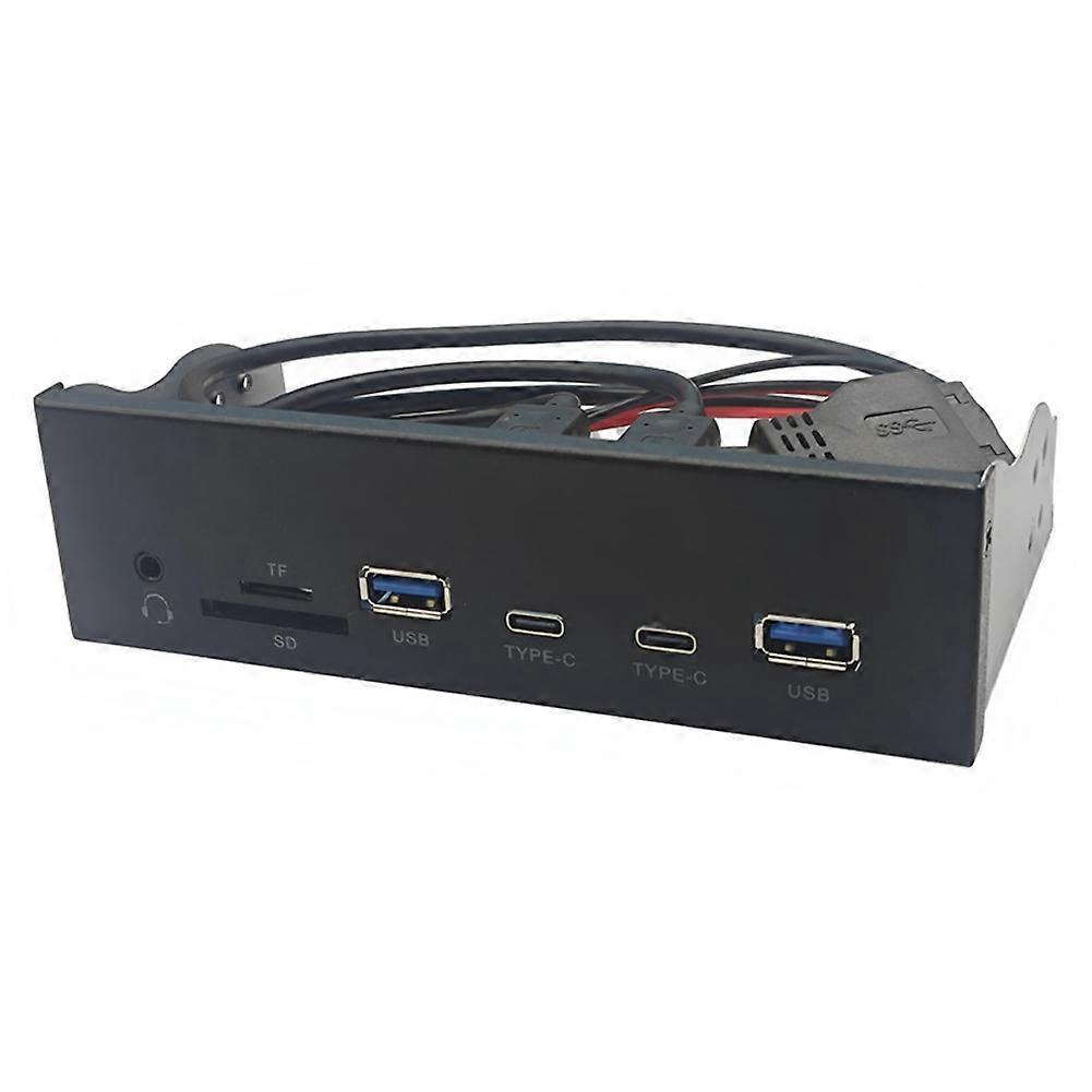 USB Front Panel for PC 2 X USB 3.2 GEN1 5Gbps + 2 X TYPE-C Hub + 3.5mm Headset+ TF/SD Slot for 5.25inch Floppy Drive Bay