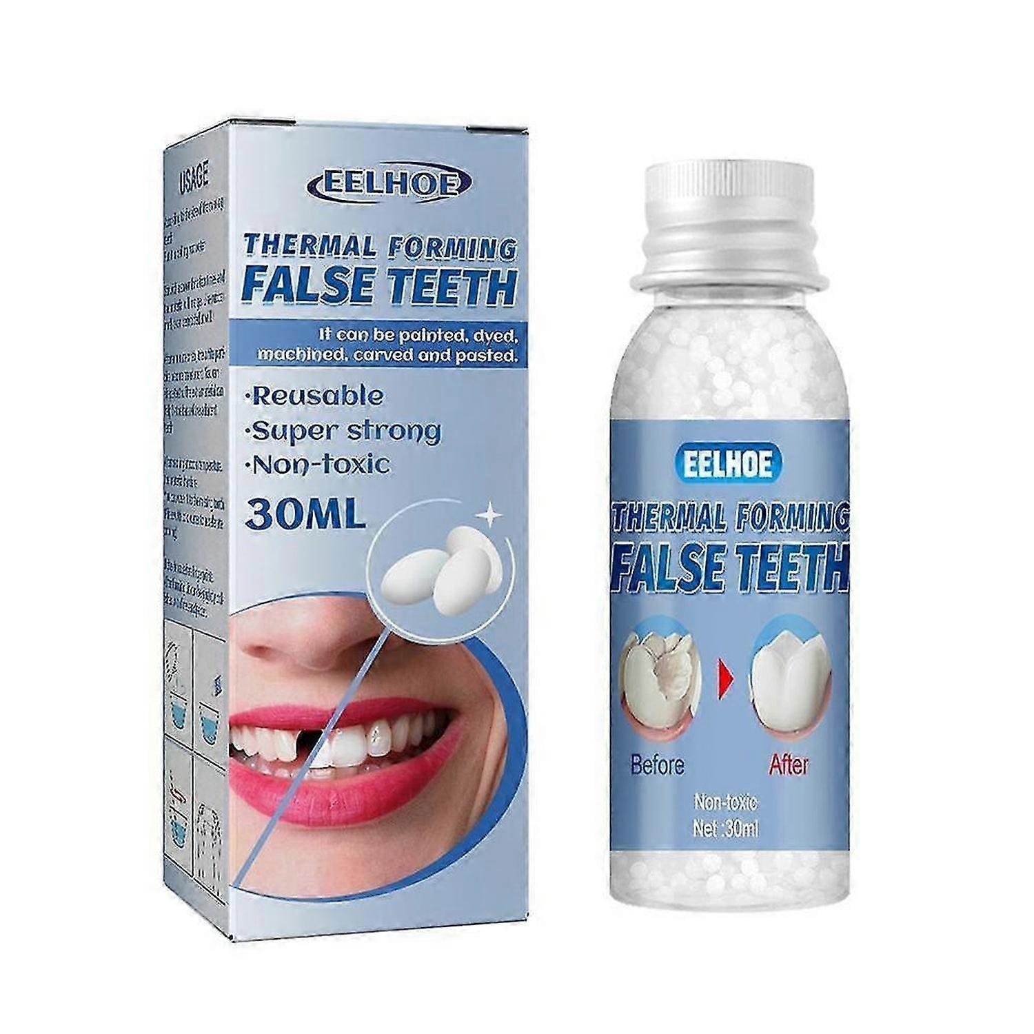 new and high quality<br> Material: PE<br> Packing size: 7*3*3cm<br> Color: as show<br> Package Includes:<br> 1x False Teeth Solid Glue<br> Features:<br> 1. Made of natural resin-based materials, non-toxic and tasteless, will not be absorbed by the human body, reusable and eco-friendly.<br> 2. Can be used for excessive teeth, broken teeth, missing teeth, Halloween dentures, etc.<br> 3. Prevent the shifting of preparation teeth.<br> 4. Easy to operate in only a few minutes, no special tools needed. And the adhesive is firm and not easy to fall off.<br> 5.Temporary Tooth Repair Kit: For the Filling repair missinggaps or broken teeth. Works great for instant and temporary use as well as it can do you a favor in smiling,Make your teeth looking natural and nice<br> 6.Multi-functional in Use : The product can also be used in cosplay, DIY, custom grips, handles and knobs, model making, prototyping and so on as you like. You may find it is a quite useful product<br> 7.User-friendly : Item is made of high quality and totally safe material. Youre rest assured to use it and its shape/size can be customized as exactly as you want just by putting in boiling water for minutes. Its quite easy done with a teeth replacement and soon enough to smile again<br> 8.Enough material included to make a Temporary Tooth 20 to 25 times or more<br> How to use:<br> 1. Prepare a cup of hot water. Take 8 - 12 granules and put them into the hot water.<br> 2. Stir it with a spoon for a few times.<br> 3. Take it out when the material merges together and becomes translucent.<br> 4. Shape the false teeth and put it into the space of the missing tooth before it becomes cold and hard.<br> 5. If you need to adjust the shape, you can put it into the hot water again and remold it when it become soft.<br> 6. It takes some practices. Don't be afraid to fail. You will get a good temporary tooth after few practices.