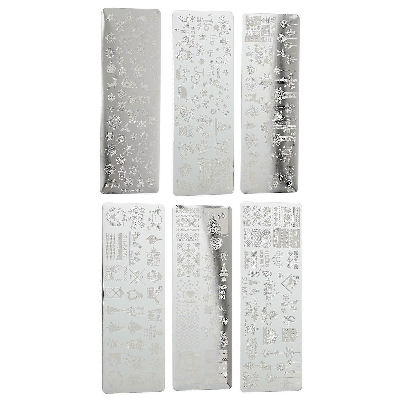 Manicure Template Travel Use Nail Art Stamping Plates Christmas Nail Design Assorted Color 12X4X0.2CM 6Pcs