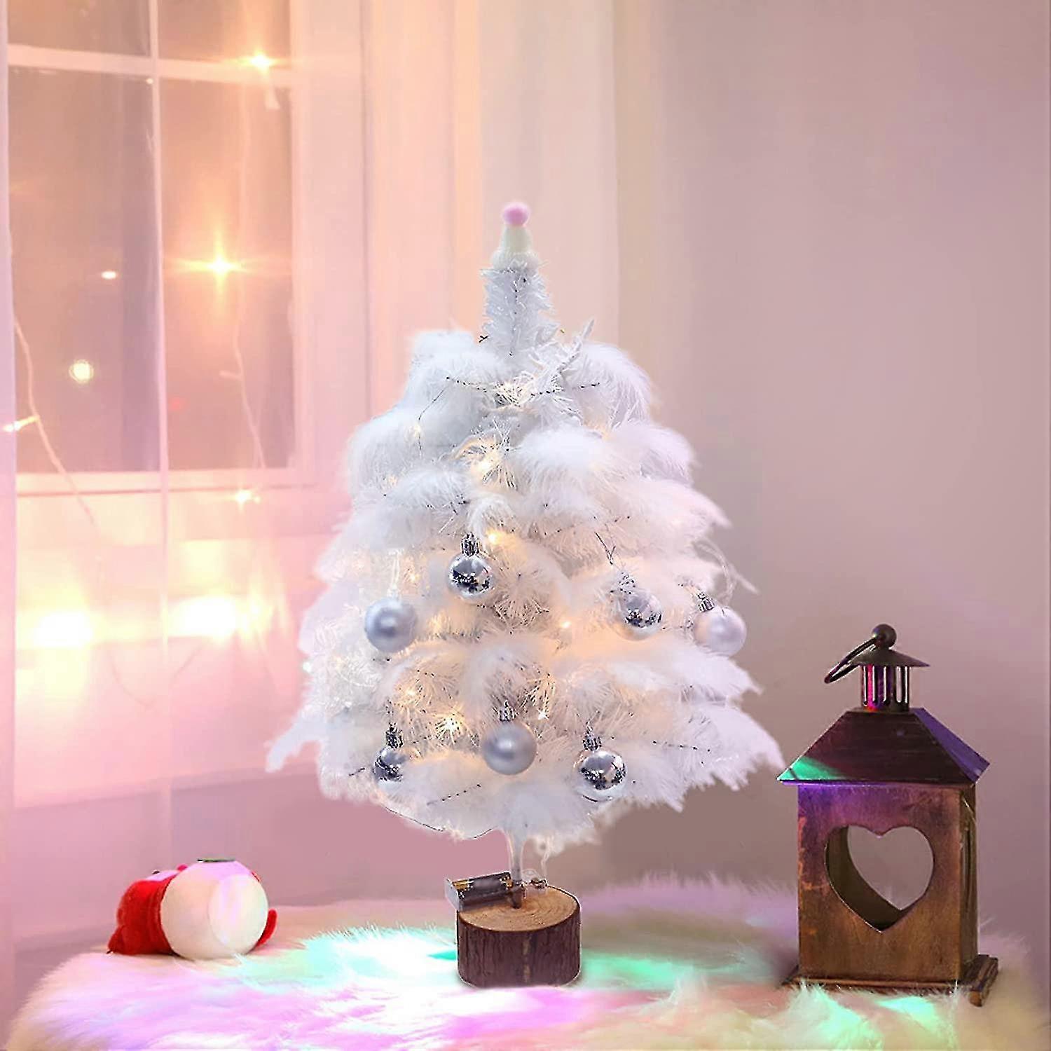 Pre-lit Artificial Mini Christmas Tree 45cm White Small Tabletop Pine Xmas Tree With Lights And Ornaments, Desktop Christmas Tree For Holiday Party De