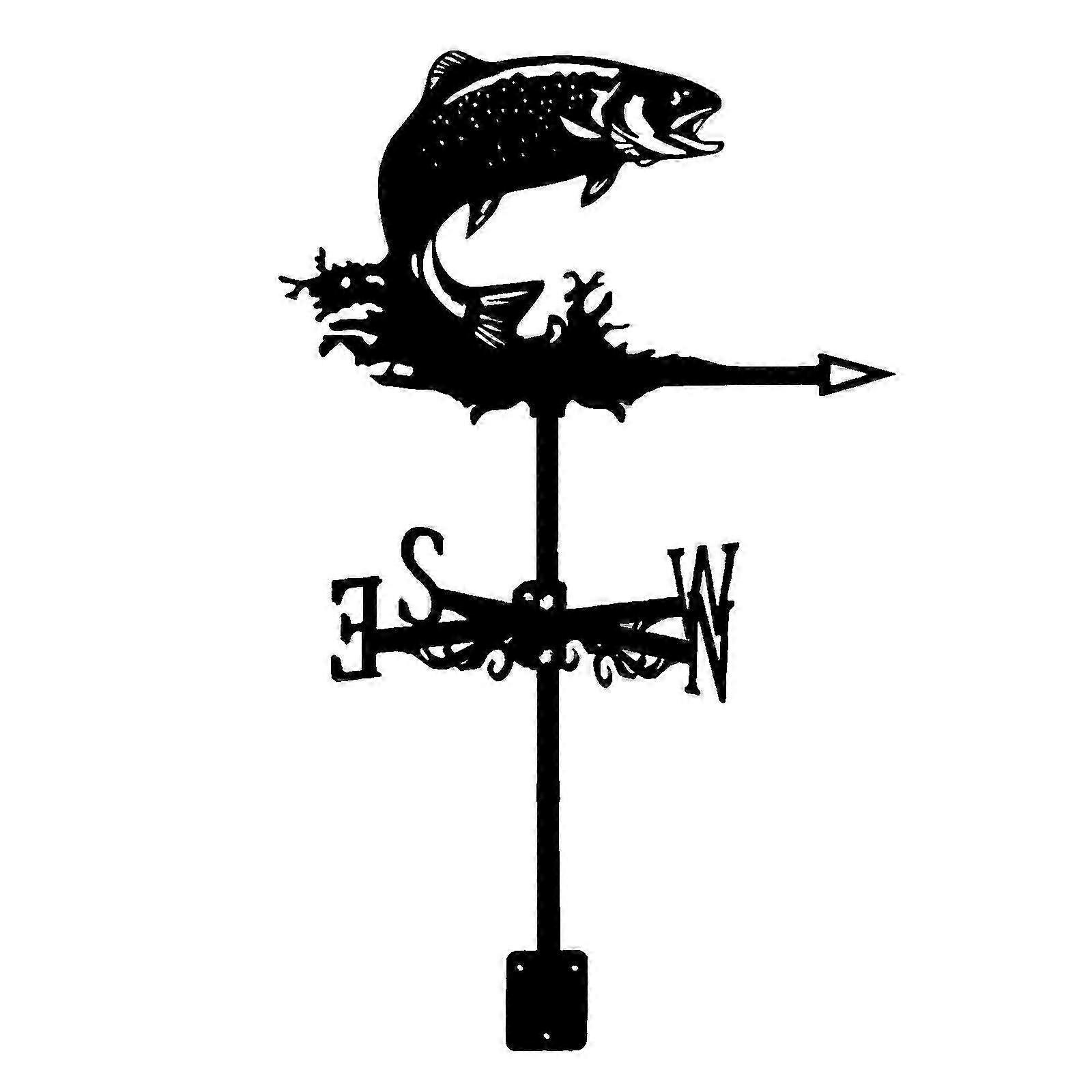 Weather Vane for Garden Shed Iron Weather Vane Fish Wind Direction Indicator and Roof Decoration Black Silhouette Design Ref: 7585