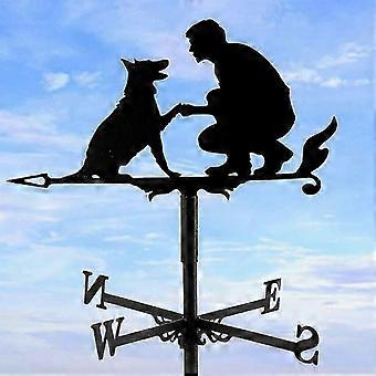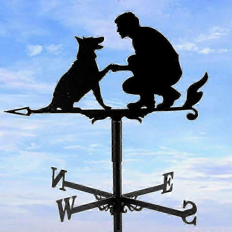 Weather Vane with Wind Direction Indicator for Man and Dog Hollow Design Carved Stainless Steel Wind Direction Black Metal Weather Vane for Garden Yar