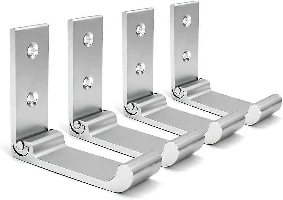 Foldable Wall Hooks, 4 Pieces Wall Mounted Helmet Holder, Invisible Coat Hooks, Aluminum Wall Hook, With Screws, Towel Jacket Hook (Silver)