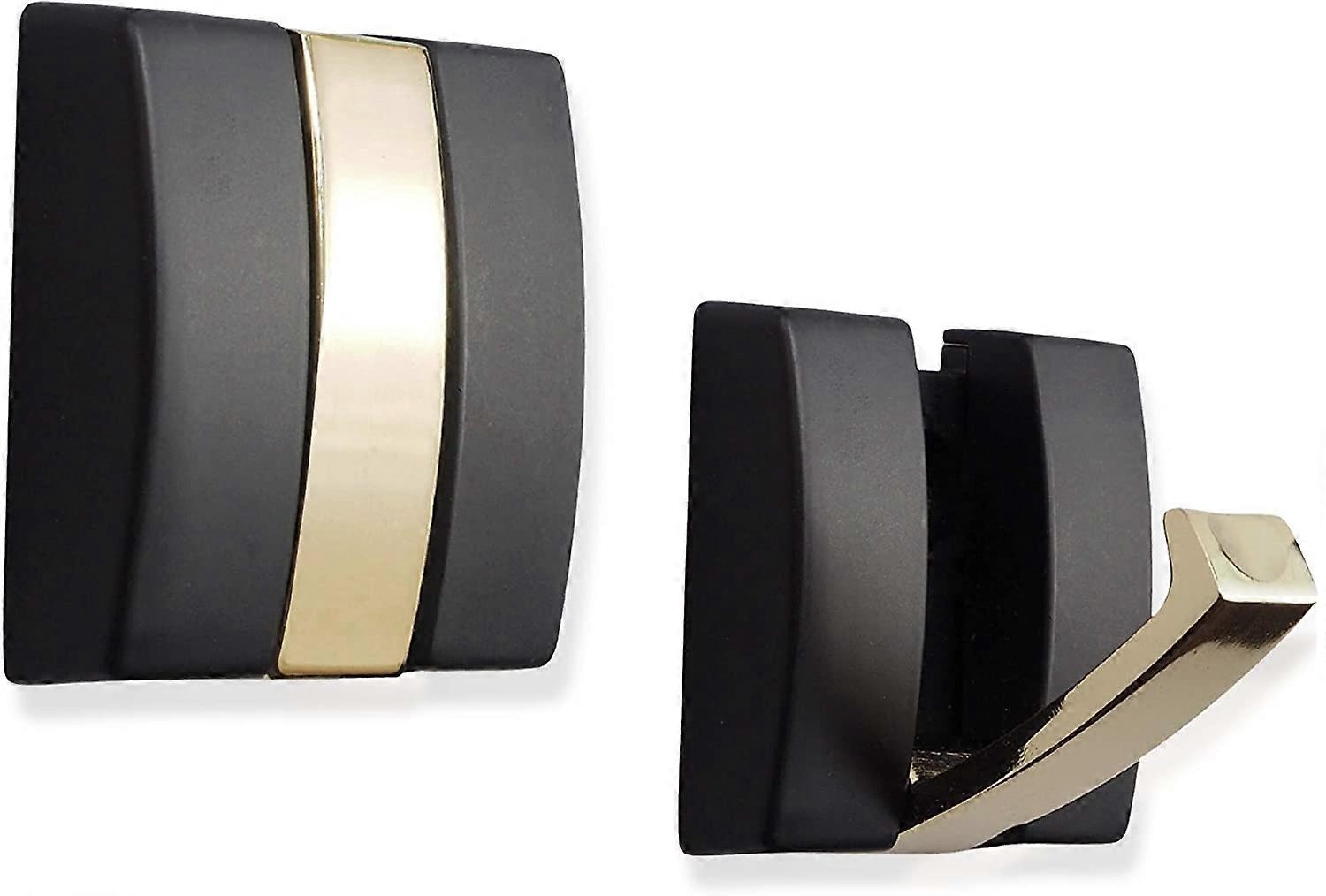 Folding Hidden Coat Hook - Space Aluminum Heavy Duty Wall Hook - Retractable Hook for Hanging Coats, Scarves, Hats (Black+Gold, 2 Pack)