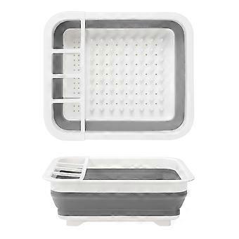 zusammenklappbares Abtropfgestell Geschirrbox in Grau-Weiß für Camping, Zuhause und Unterwegs