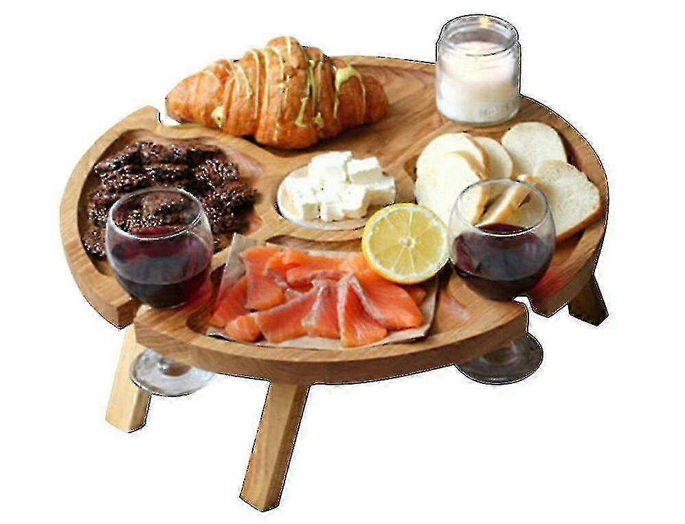 Folding picnic table for outdoor with wine glass holder