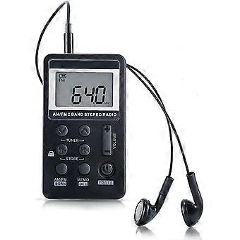 AM FM Radio,Mini Portable Pocket Radio Receiver with Earphone,Rechargeable Battery for Walk/Jogging/Gym/Camping (Black)