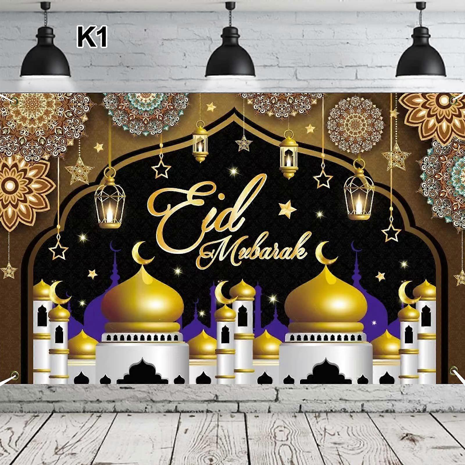 Ramadan Mubarak Backdrop, Islamic Muslim Theme Background Festival Party Banner with Moon Lantern Signs, Banner Decorations Cake Table Banner