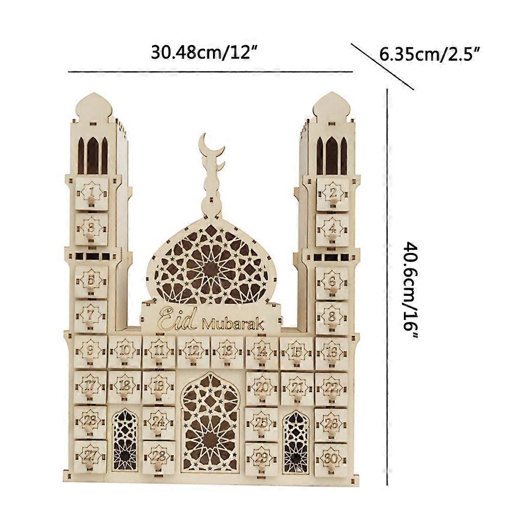 Ramadan Advent Calendar Wooden Ornament Eid Mubarak Countdown Calendar Decoration with LED Lights