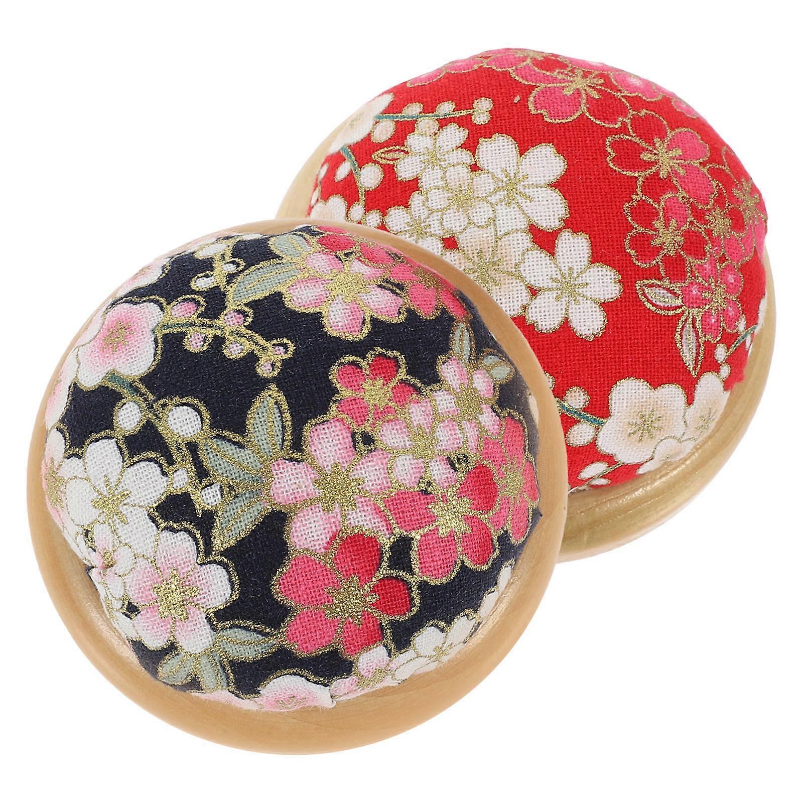 Sewing Pin Pad Japanese Style Wooden Base Needle Storage Random Style 7.00X7.00X4.00CM DIY Handcraft Tool 2Pcs