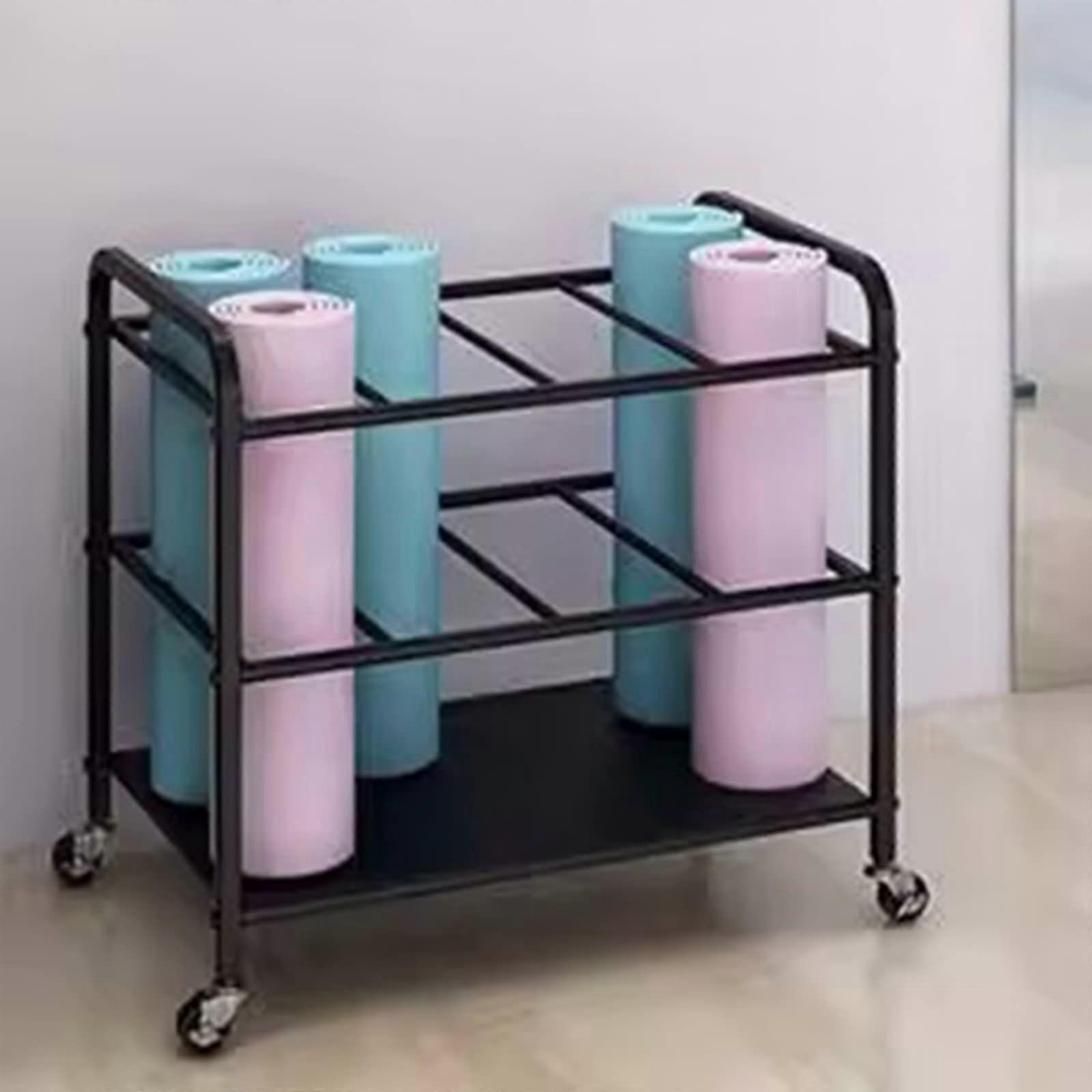 Sports Equipment Storage Rack for Garage Yoga Mats, Home Gym Organizer Cart with Wheels, Black Foam Roller and Block Holder