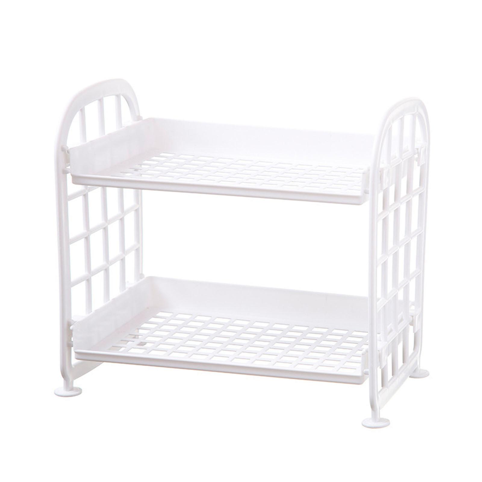 1、Double Layer Design: This desktop storage rack features a dual layer structure that maximizes desktop space, making it easy to organize and store items neatly. 2、Versatile Use: This desktop storage shelf can hold cosmetics, books, computers, and more, enhancing overall desk organization and cleanliness. 3、Plastic Material: Crafted from plastic material, this desktop organizer is sturdy and long lasting, resistant to deformation even with prolonged use. 4、Simple and Stylish: The simple and stylish look of this hollow double layer storage rack is perfect for placement on home or office desktops, adding a touch of aesthetic appeal. 5、Convenient and Portable: Easy to carry and use, this tabletop storage rack brings convenience and comfort to your life and work, offering a practical solution for organizing and storing. ----------------------- None ----------------------- 1 x Desktop Storage Rack