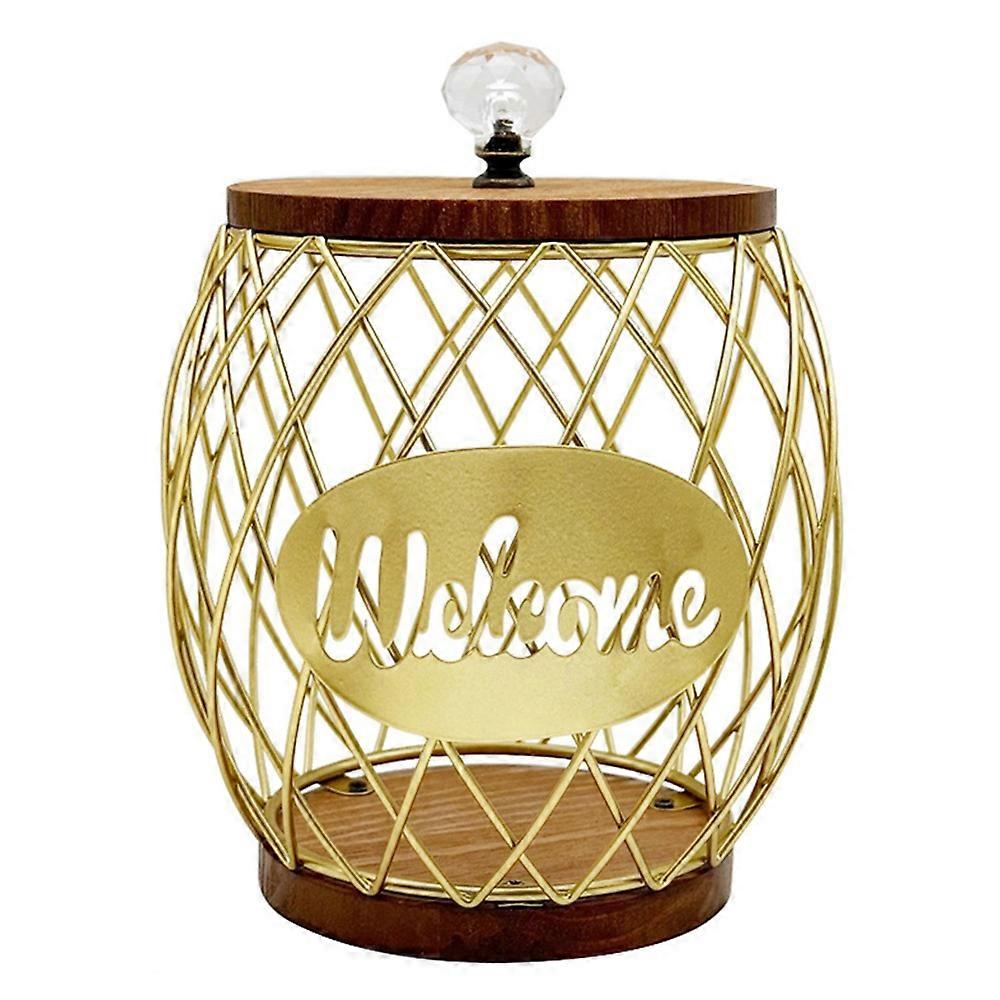 Type B Iron and Wood Coffee Capsule Storage Rack with Crystal Lid and Gold Pineapple Design