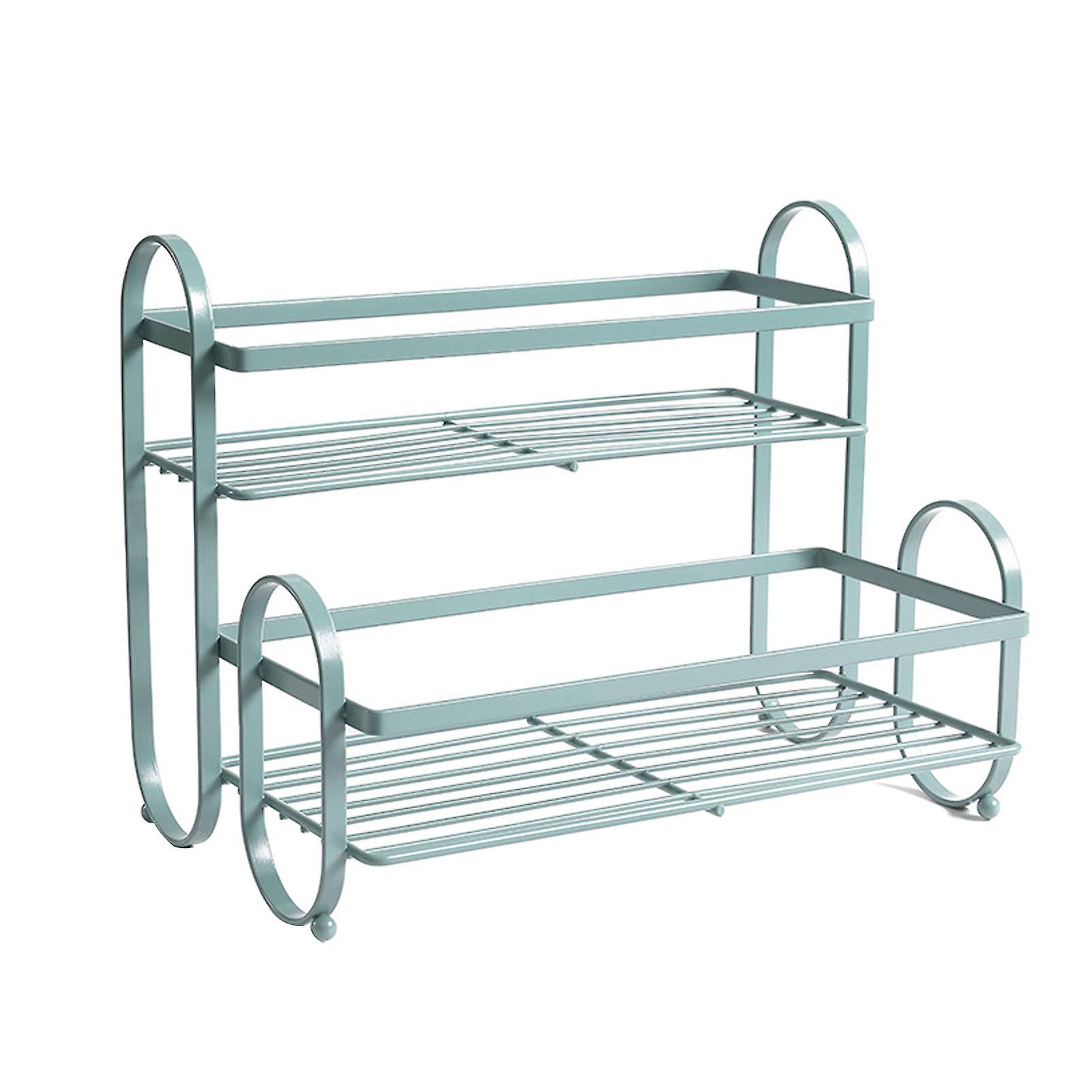 Metal Desktop Storage Rack 2 Tier Prevent Slip Multifunction Metal Iron Spice Rack Organizer for Kitchen Bathroom Green