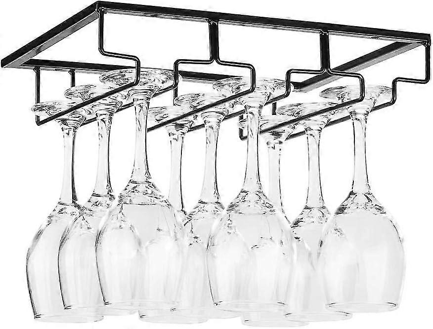 Wine Glass Rack - Under Cabinet Stemware Wine Glass Holder Glasses Storage Hanger Metal Organizer For Bar Kitchen Black