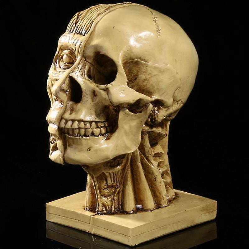 Realistic Human Skull Muscle Head Resin Model Home Bar Decor Yellow