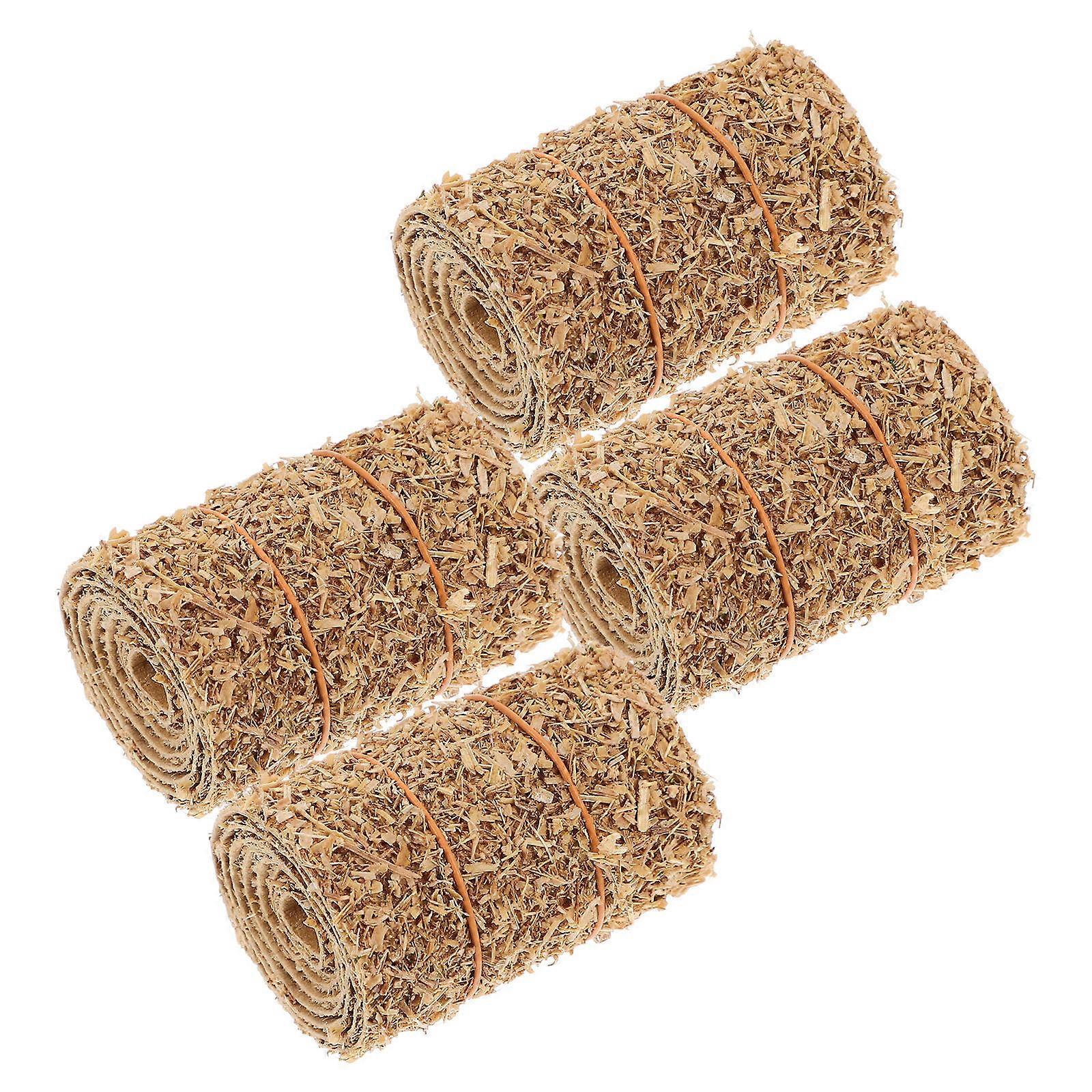 Realistic Mini Hay Bales Decoration for Doll House Craft Accessories Chocolate Color Wood Material 4 Pieces