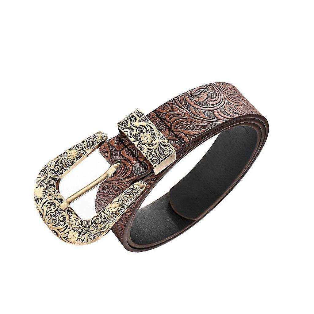 Retro Embossed Waistband Pin Buckle Belt for Jeans Pants Adult Waist Decoration