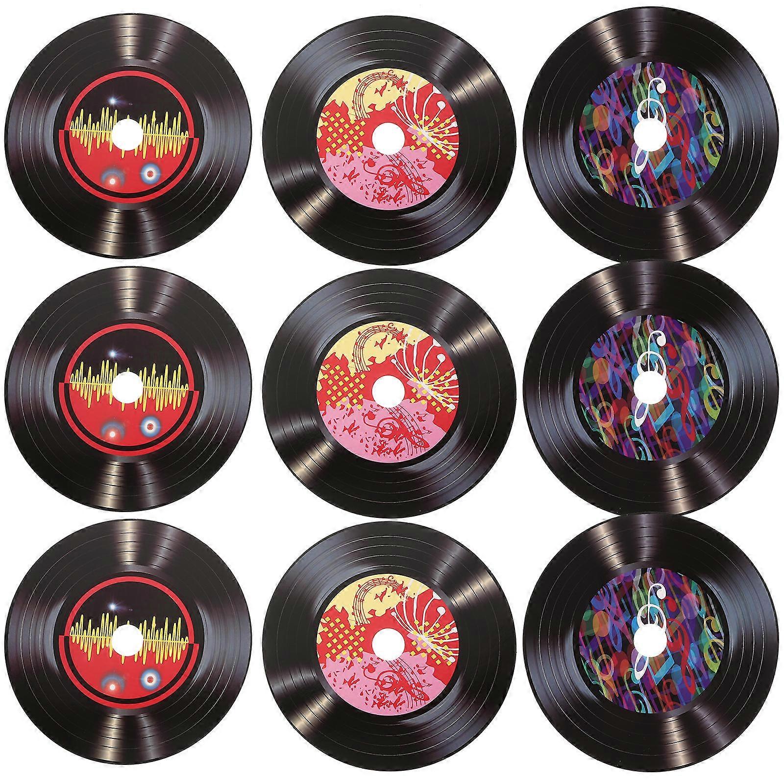 Retro Vinyl Record Wall Decor – 9pcs Wear Resistant Hanging Home Decoration for Bar, Cafe & Living Room – Easy Clean Paperboard Design with Vintage