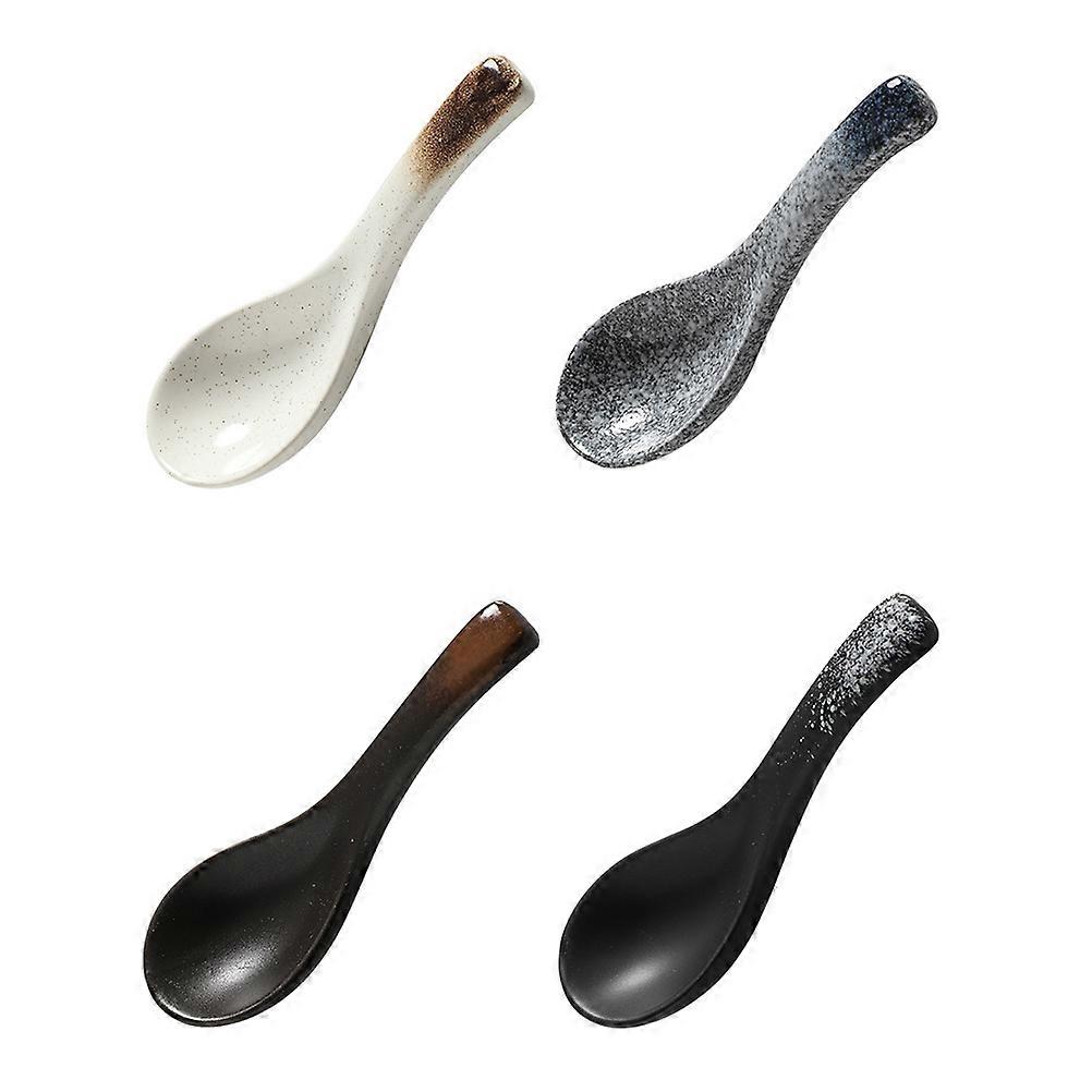 Retro Style Ceramic Serving Spoons And Fine Craftsmanship Blue Tone 4 Pcs