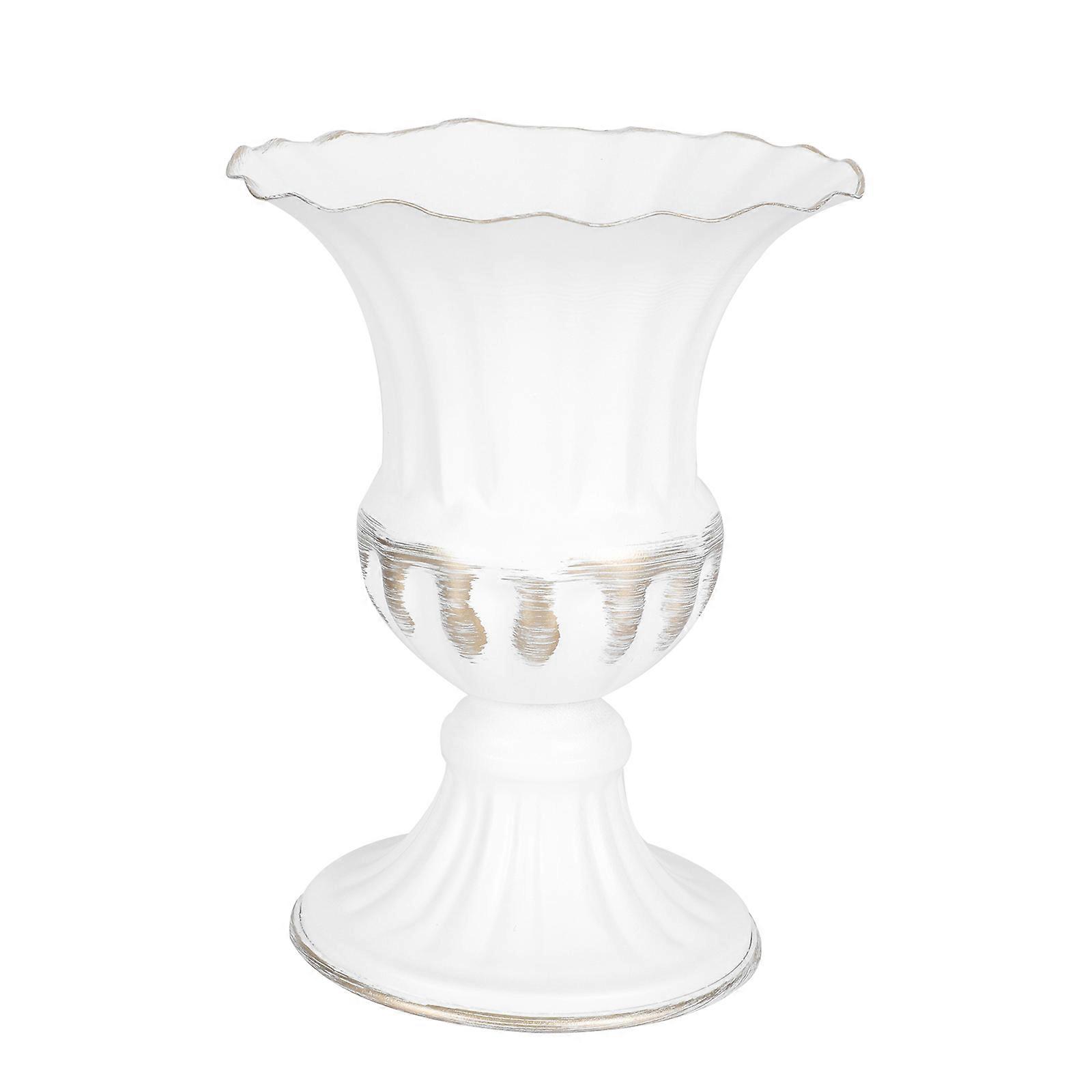 Retro Design Rustic Vase Iron Artware for Gardening Enthusiasts Flower Lovers 16x12cm White Gold 1Pc