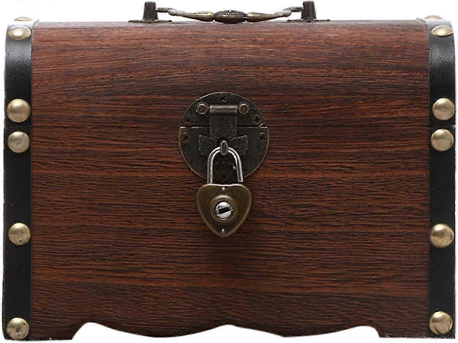 Retro Handmade Solid Wood Piggy Bank with Lock and Keys, 1pc Wooden Treasure Chest