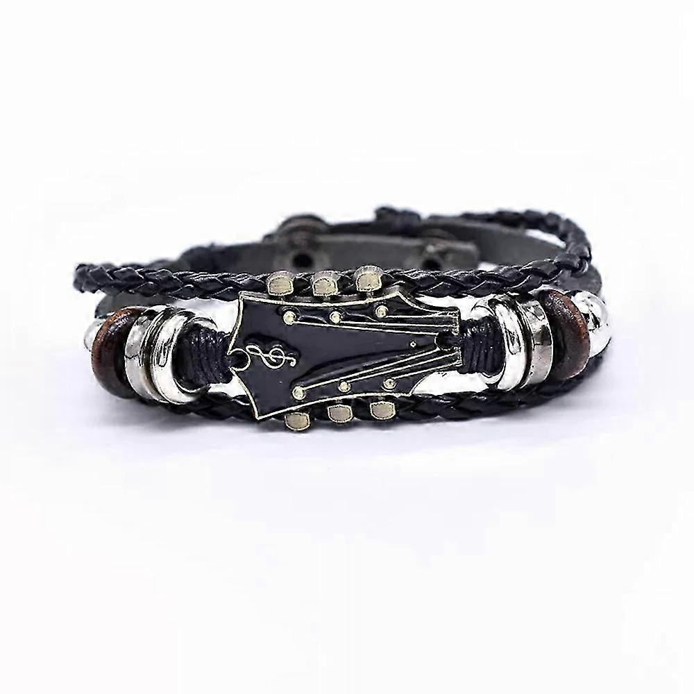Retro Faux Leather Guitar Bracelet,Zinc Alloy Rock Music Guitar Leather Bracelet-Yvan