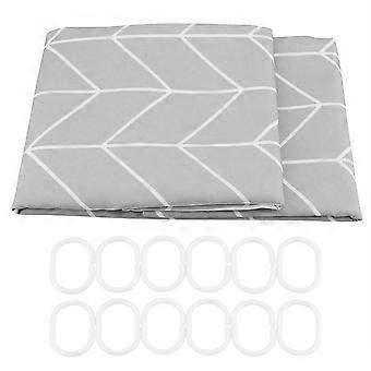 Striped Thicken Shower Bath Curtain Waterproof Bathroom Curtain Hanging Hooks Grey(200*200cm)
