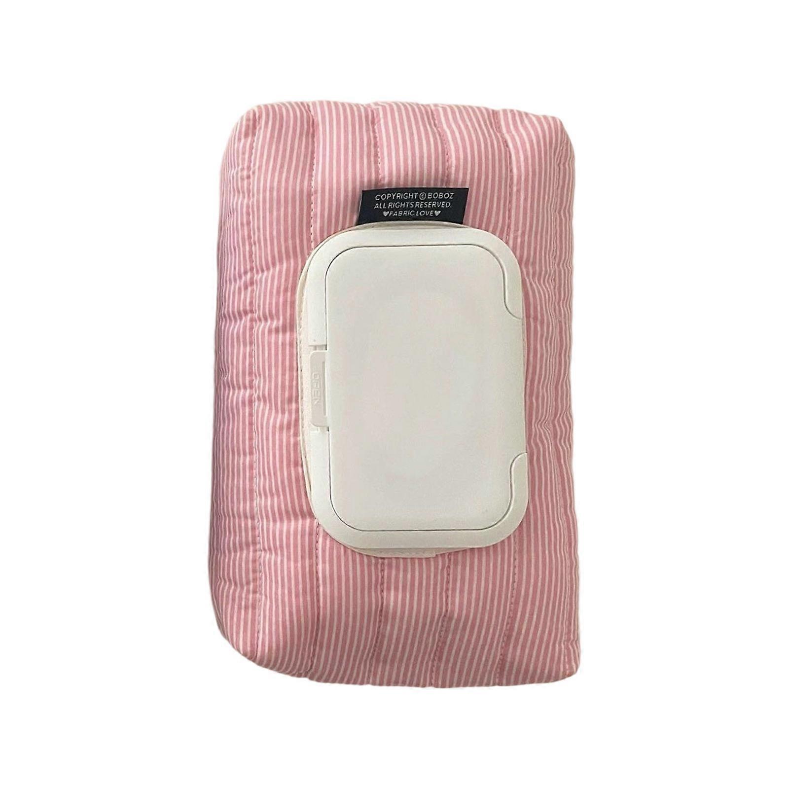 Striped Design Polyester Wet Wipes Case Vehicle Home Essential Foldable Lid Quick Access Bag Tissues Holder Pink