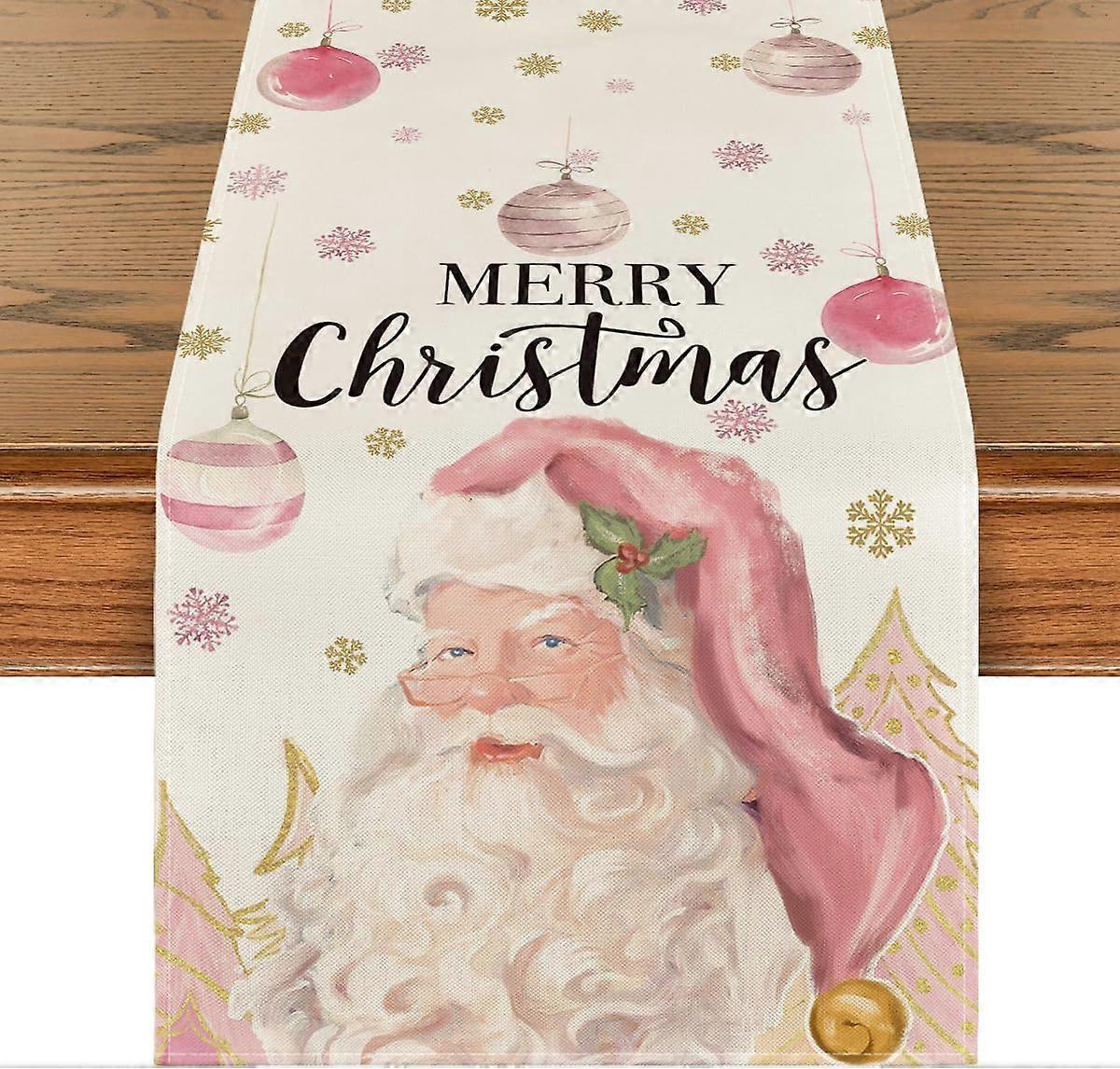 Pink Santa Claus Xmas Balls Christmas Table Runner, Seasonal Winter Holiday Kitchen Dining Table Decoration for Home Party 13x72 Inch