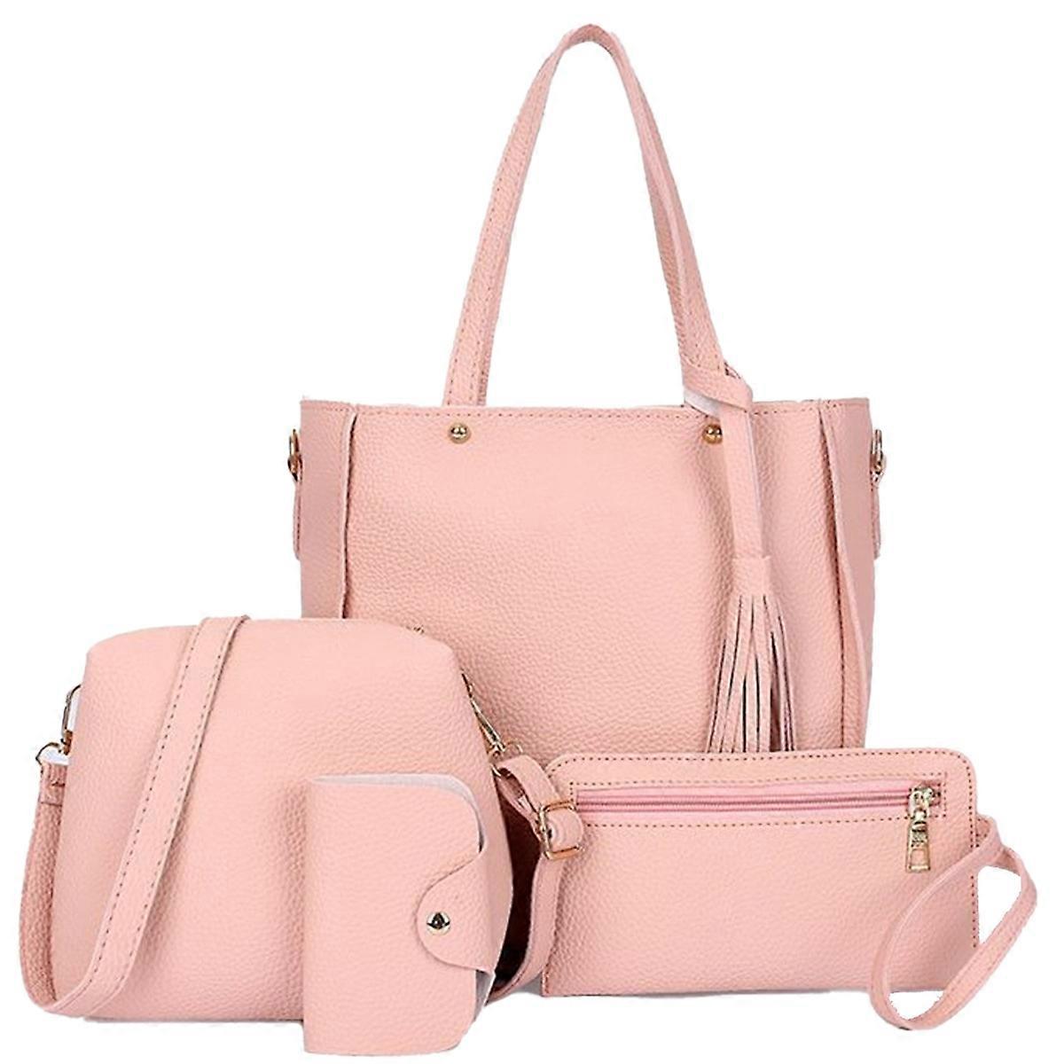 Pink Women 4 Piece Set Handbag and Shoulder Bag and Wallet and Card Holder Elegant Multifunctional Daypack Large Capacity Travel Bags Shoulder Bags