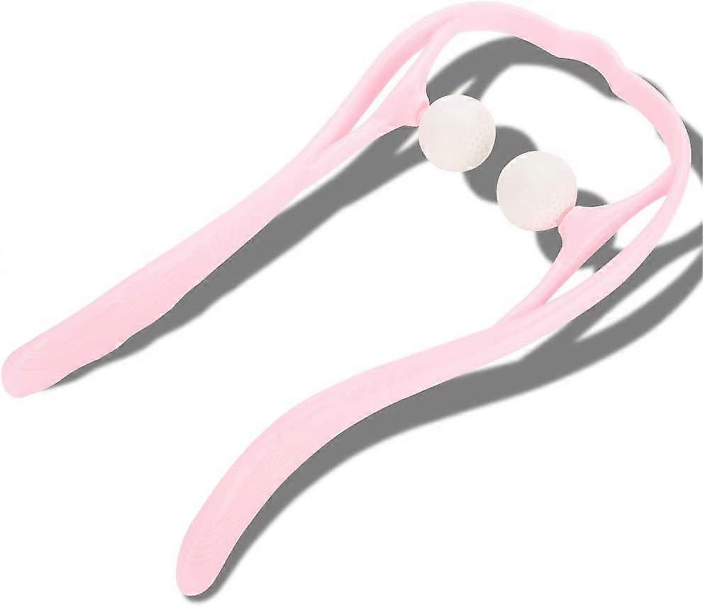 Pink Neck Massager Manual Neck and Shoulder Massager Shiatsu Roller Ball Massage Self Massage Tool Pain Relieve Massager Dual Trigger Point Manual Rol
