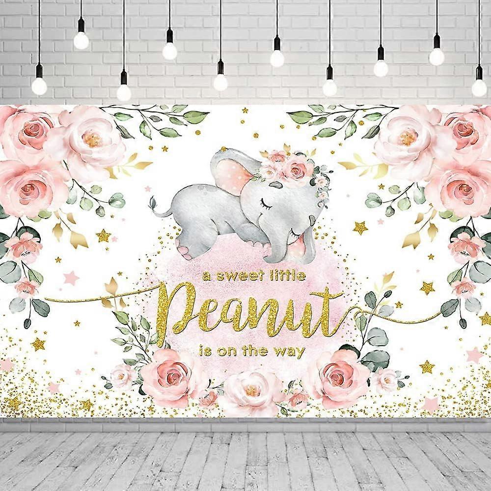 Pink Floral Elephant Baby Shower Banner Elephant Baby Shower Backdrop for Girl Baby Shower Party Decorations A Sweet Little Peanut is on The Way Pink