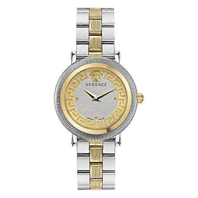 Versace Ladies Coin Edge Stainless Steel Watch VE7F00423 Discover elegance and sophistication with the Versace Ladies Coin Edge Stainless Steel Watch VE7F00423. This exquisite timepiece is a perfect blend of modern style and classic Italian luxury. It is designed for women who appreciate the finer things in life and want to make a statement with their accessories. The unique case design celebrates iconic patterns synonymous with the Versace brand, showcasing a stunning 3D Medusa at 12 o'clock and the signature Greca motif. Movement - 2 hands quartz Water Resistant - 50 meters Size - 35 mm Case Color - Gold-Tone Case Thickness - 8.10 mm Case Material - Stainless Steel Top Ring Color - Stainless Steel Top Ring Material - Stainless Steel Dial Color - White Dial Material - BRASS Strap Color - SS & Yellow Gold Tone Strap Length - 176.8mm Lens Glass - Sapphire antireflex Origin - Swiss Made RONDA 762.3 Swiss Quartz 2 hands movement 35 mm - Bico (SS&IP2N) case White Silver guillochè dial with 3D Greca on the inner dial. Versace logo and Medusa head at 12h Bicolor (SS & IP2N) band with butterfly buckle This watch is more than just a beautiful accessory; it is a testament to superior craftsmanship and innovative design. The sleek gold-tone stainless steel case measures 35 mm, boasting a thickness of just 8.10 mm, making it easy to wear and incredibly stylish. The sophisticated white guilloché dial features the Versace logo and an iconic Medusa head, ensuring that it stands out in any setting. Water-resistant up to 50 meters: Whether you're lounging by the pool or caught in a light rain, this watch can handle it all without compromising its elegance. High-quality Swiss movement: Powered by the reliable RONDA 762.3 Swiss quartz movement, you can trust this watch to keep accurate time for years to come. The beautifully crafted bicolor bracelet combines stainless steel and yellow gold tones, finished with a butterfly buckle for a secure fit. The premium sapphire antireflex lens not only protects the dial but enhances clarity, allowing you to admire the intricate details at all angles. Your purchase includes a special dedicated black pack that makes this watch a perfect gift or a treat for yourself. Investing in the Versace Ladies Coin Edge Stainless Steel Watch VE7F00423 means choosing a symbol of luxury that reflects your unique style and taste.